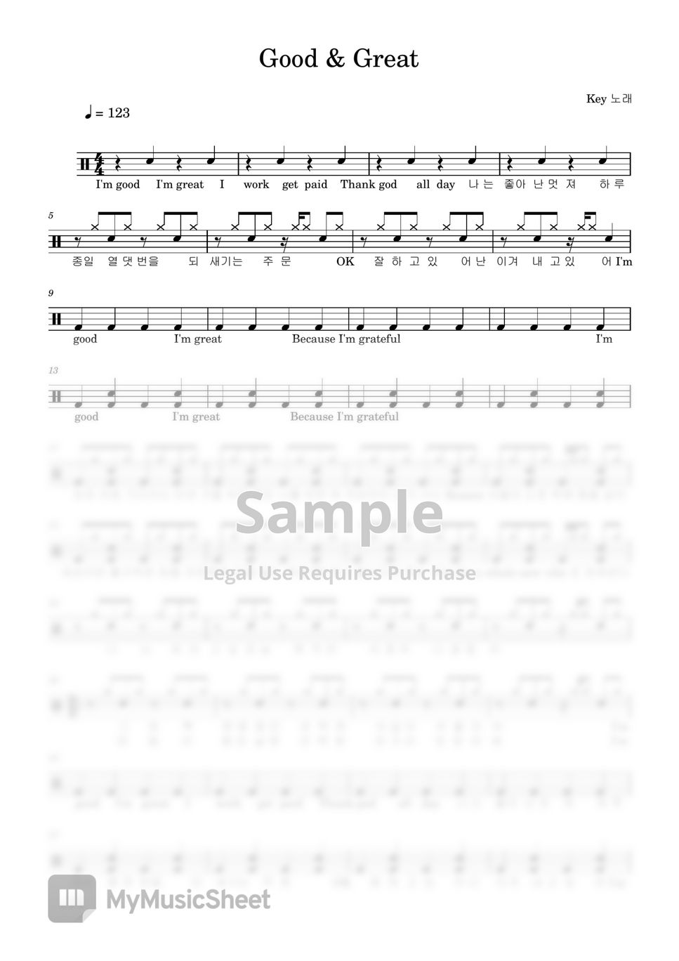 Drum sheet outlet music key