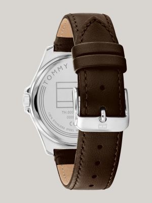 Black leather outlet wrist watch