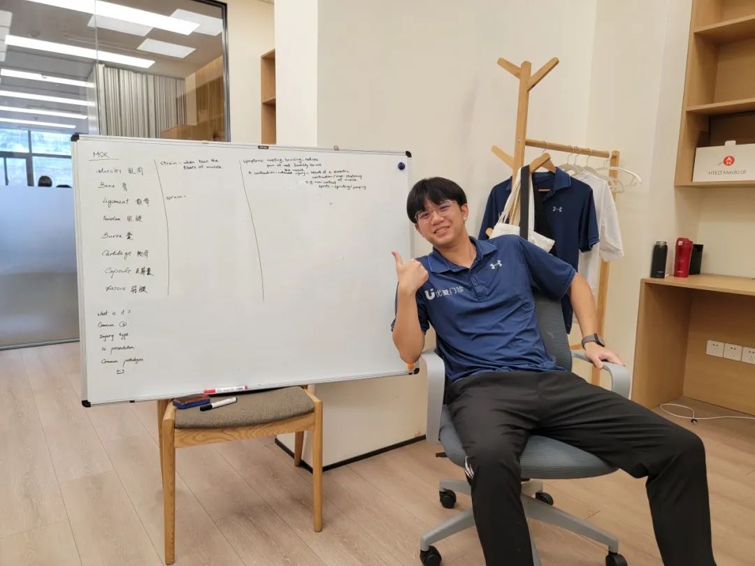 在UP Clinic的时光似乎转瞬即逝,但我仍然学到了很多我之前不理解的东西。我看到了上肢和下肢关节损伤的典型病例,仔细观察了患者病例的书写,并了解了一些康复器械的使用。通过YBT测试,我也意识到自己在四肢左右平衡上的不足。我亦对于主观评估(针对疼痛)和客观数据(针对关节活动度等)在不同康复阶段的不同作用有了新的认识。最后,我想对治疗师Amari,Joseph以及伴随在他们左右的助手哥哥姐姐们致以衷心的感谢,他们在百忙之余为我解惑并给出指导,让我深刻感受到了“Movement is medicine.”的真谛。