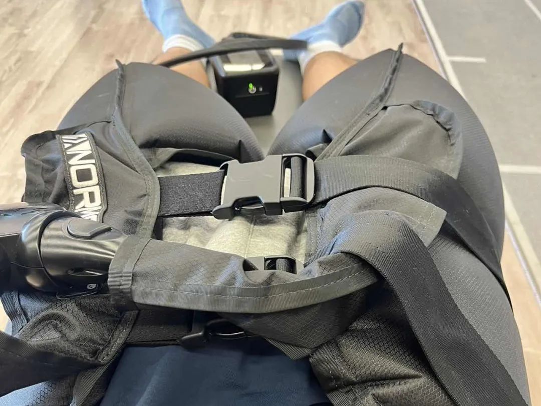 在优复进修期间,我印象最深刻的是亲身体验的各种测试。特别是MFD肌肉松解技术,虽然会带来不适感,但肌肉松解的效果十分显著。还有就是Alter-G Treadmill,通过仪器带来的风压来降低自身受到重力,减少关节压力来帮助患者适应行走和跑跳,让其逐渐恢复到正常水平。