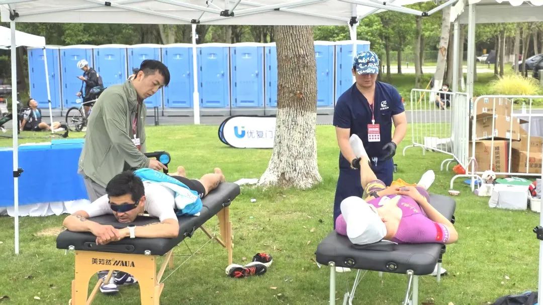 优复医疗助力2025长三角国际铁人三项赛,专业恢复科学拉伸,守护钢铁侠们赛后健康!