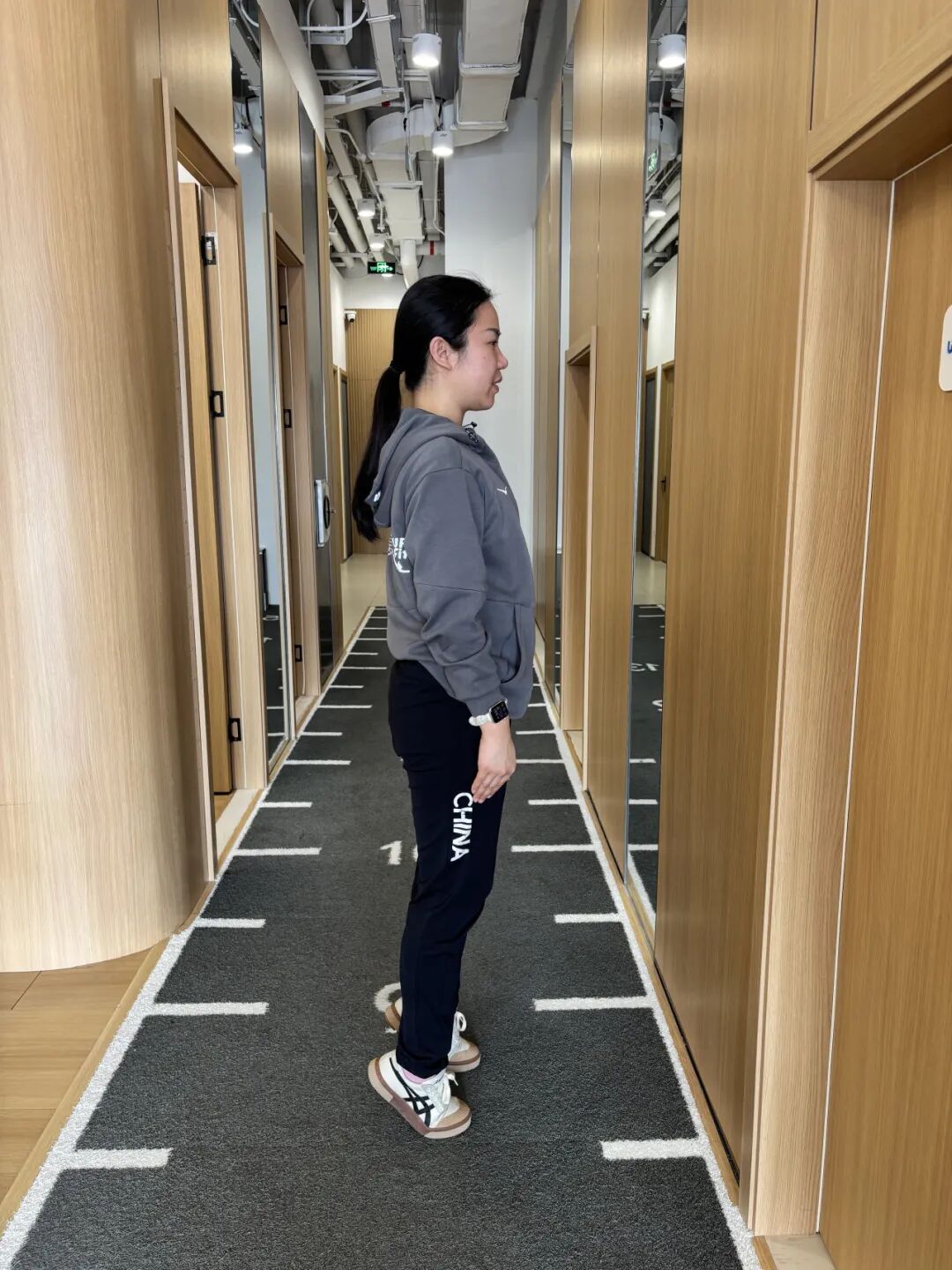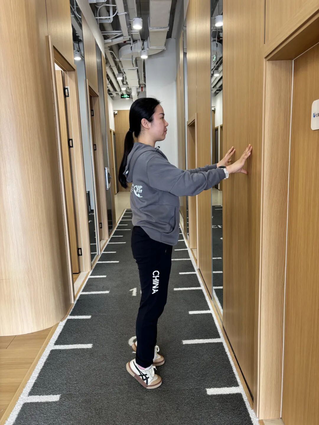 2. 重心转移到前脚掌,收紧小腿抬起脚后跟