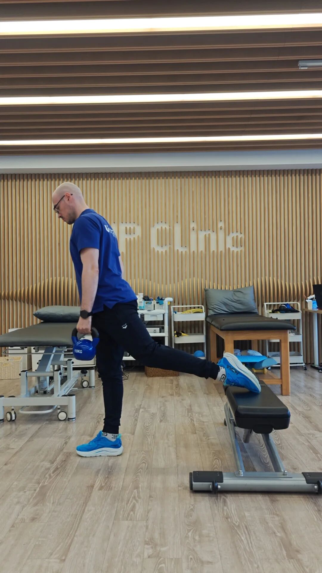1. 一只脚放在身后长凳上,另一只脚略微向前踩地