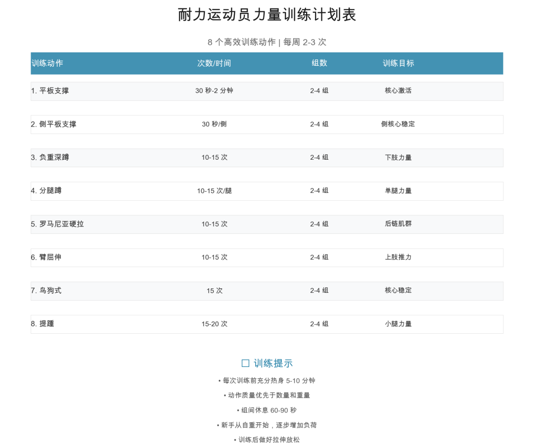 训练计划建议总结